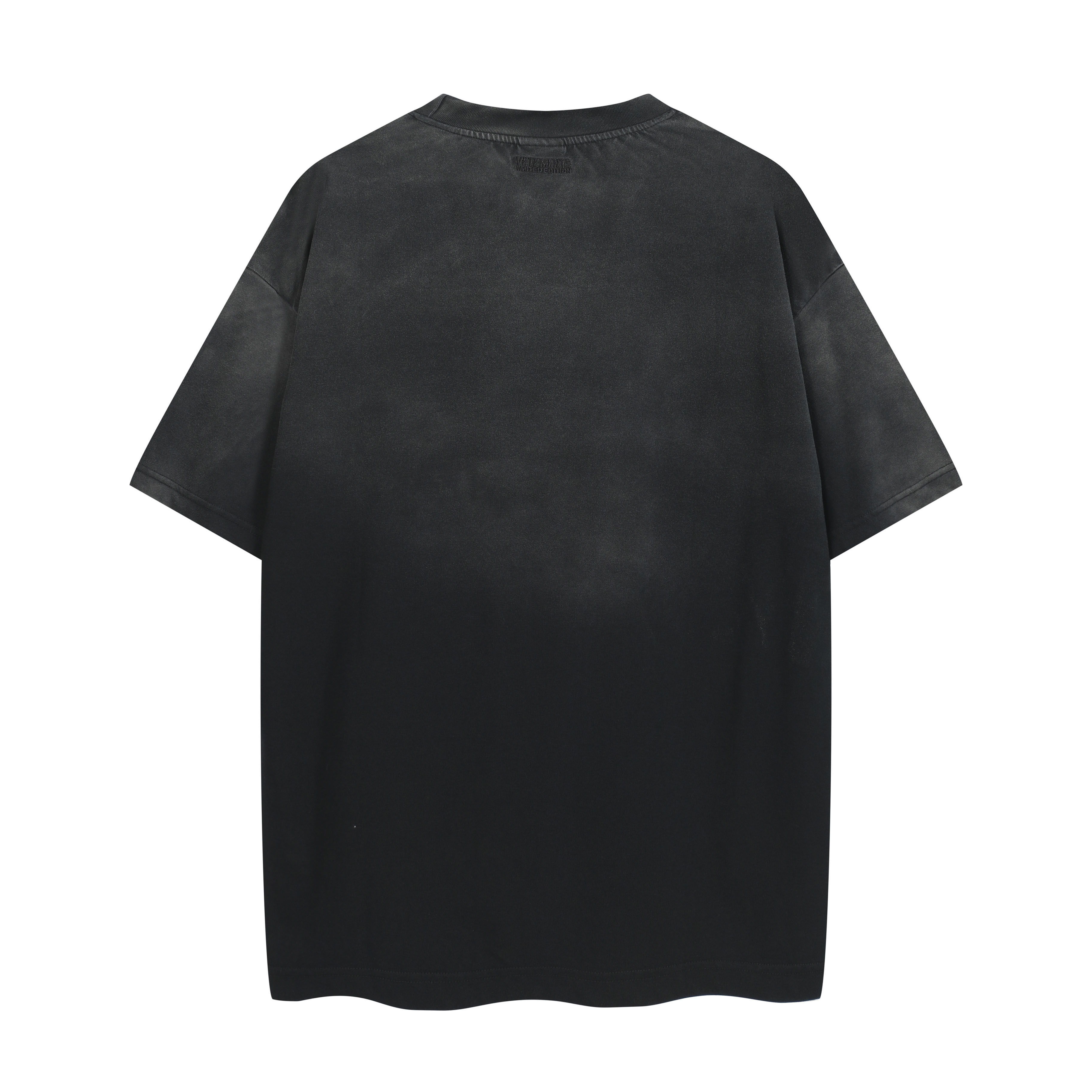 DetailsMaterials: Likely 100% Cotton JerseyColor wash: BlackNeckline: Ribbed CrewneckFit: Relaxed/Oversized Care DescriptionWashing: Machine wash cold, inside out, on a gentle cycle. Use a mesh laundry bag to protect the delicate logo treatment.