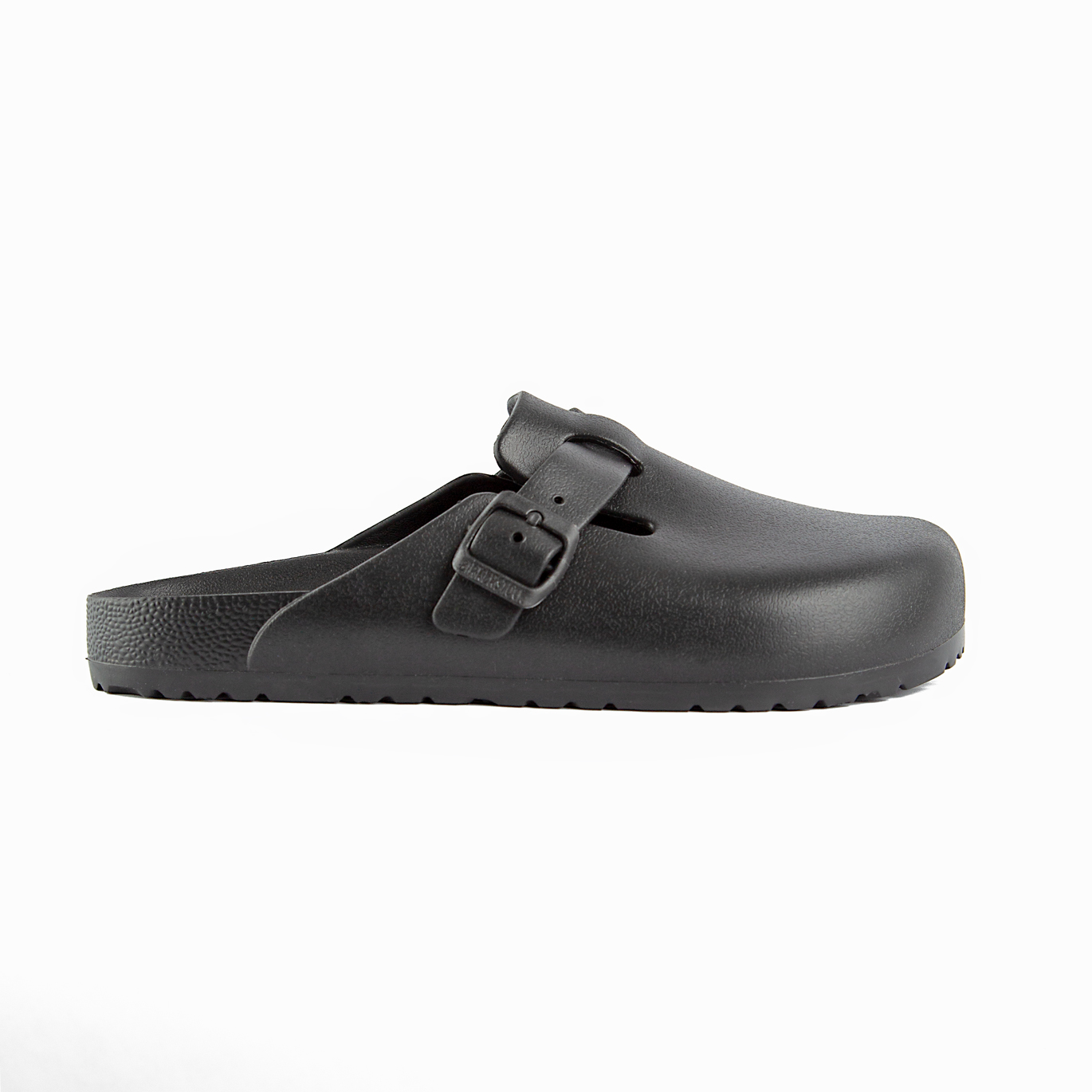 Material: 100% EVA, making them waterproof, washable, flexible, and ultralight.Features: Contoured footbed for support, water-friendly, shock-absorbing, adjustable strap.Care: Easily cleaned with soap and water; air dry away from direct sunlight or extreme heat to prevent damage to the EVA material. Do not machine wash or tumble dry.