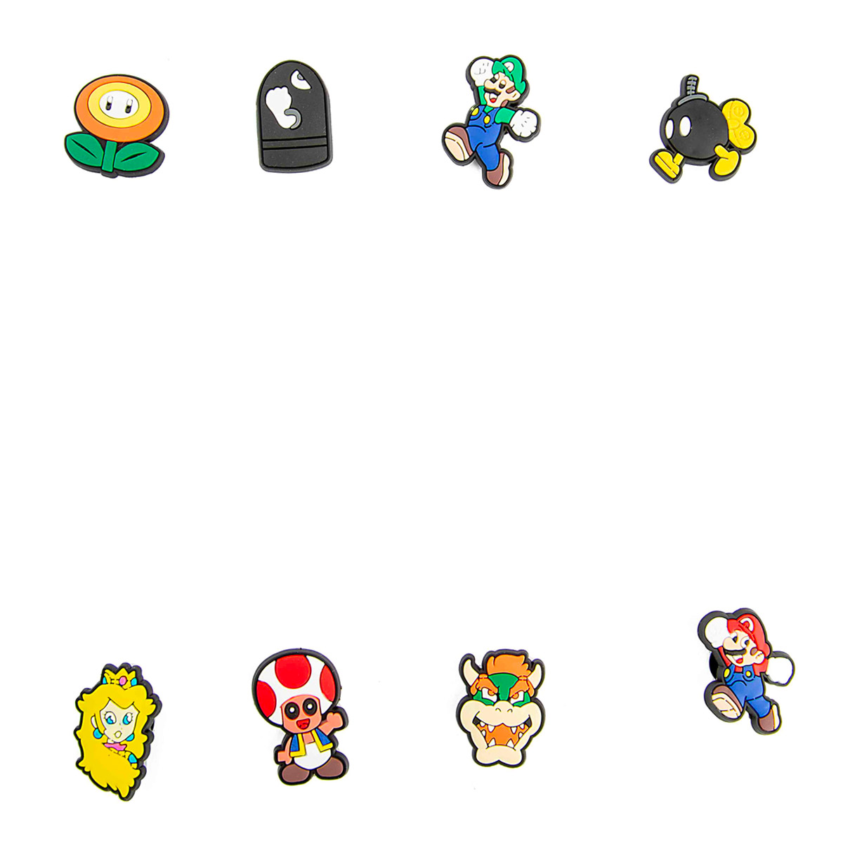 Total for the 8 Jibbitz Charms shown: #16,000 (This amount is for the complete set of 8 charms, ideal for one pair of Crocs, 4 charms per shoe). Detailed Description: These Crocs Varsity Letter Jibbitz Charms allow you to personalize your favorite Crocs footwear with a bold, graphic statement. This set includes 8 distinct black and white, layered letter charms, perfect for customizing a pair of Crocs with 4 charms on each shoe.