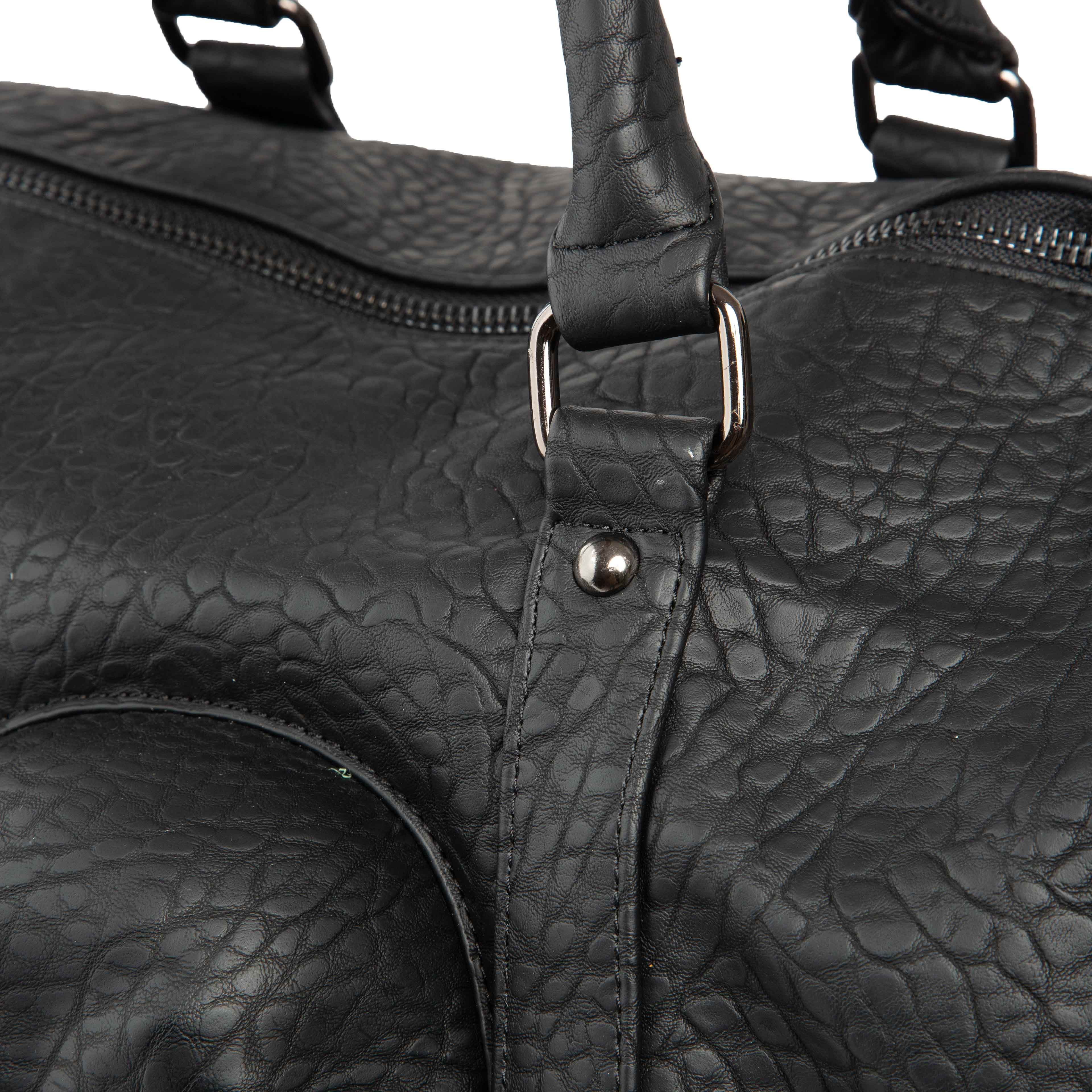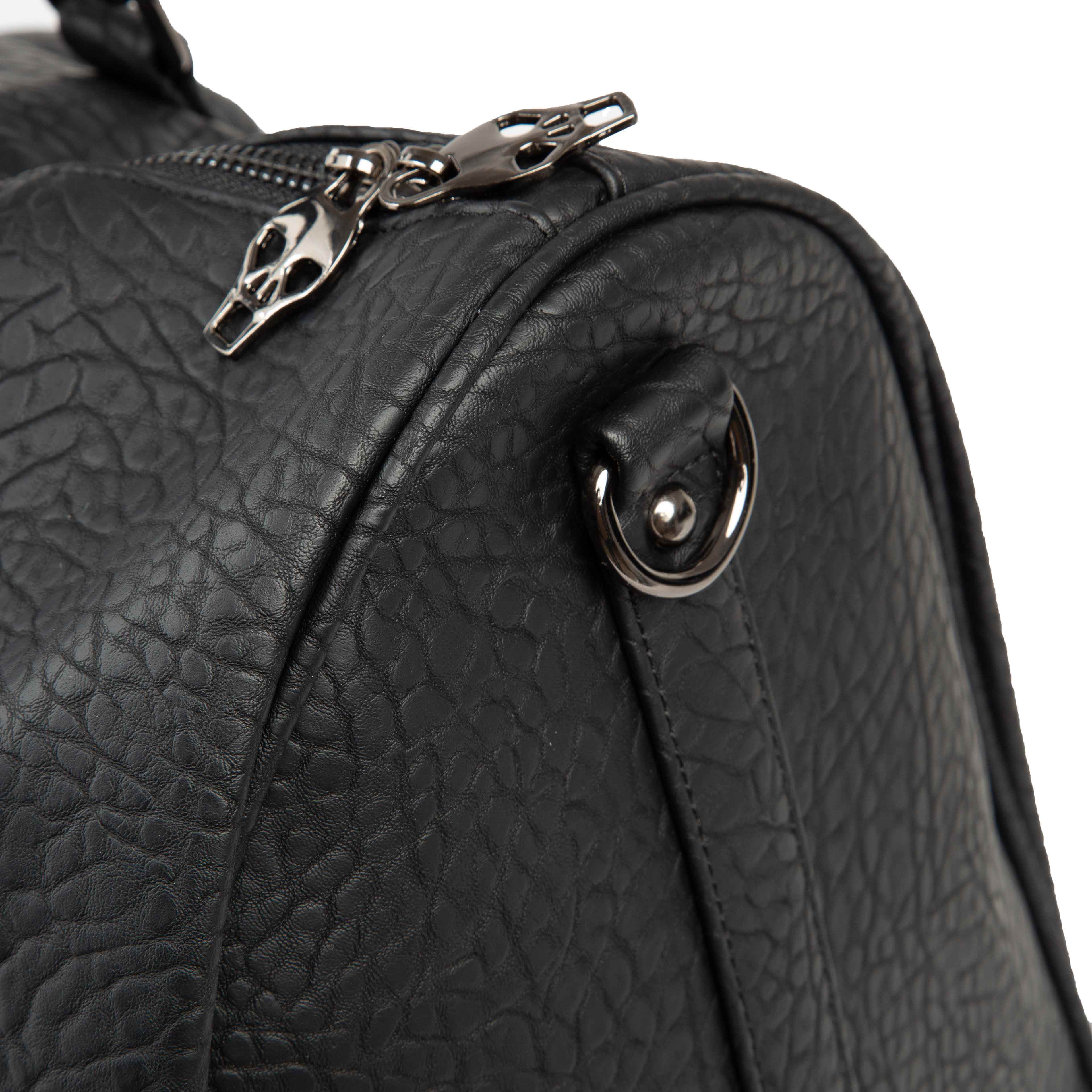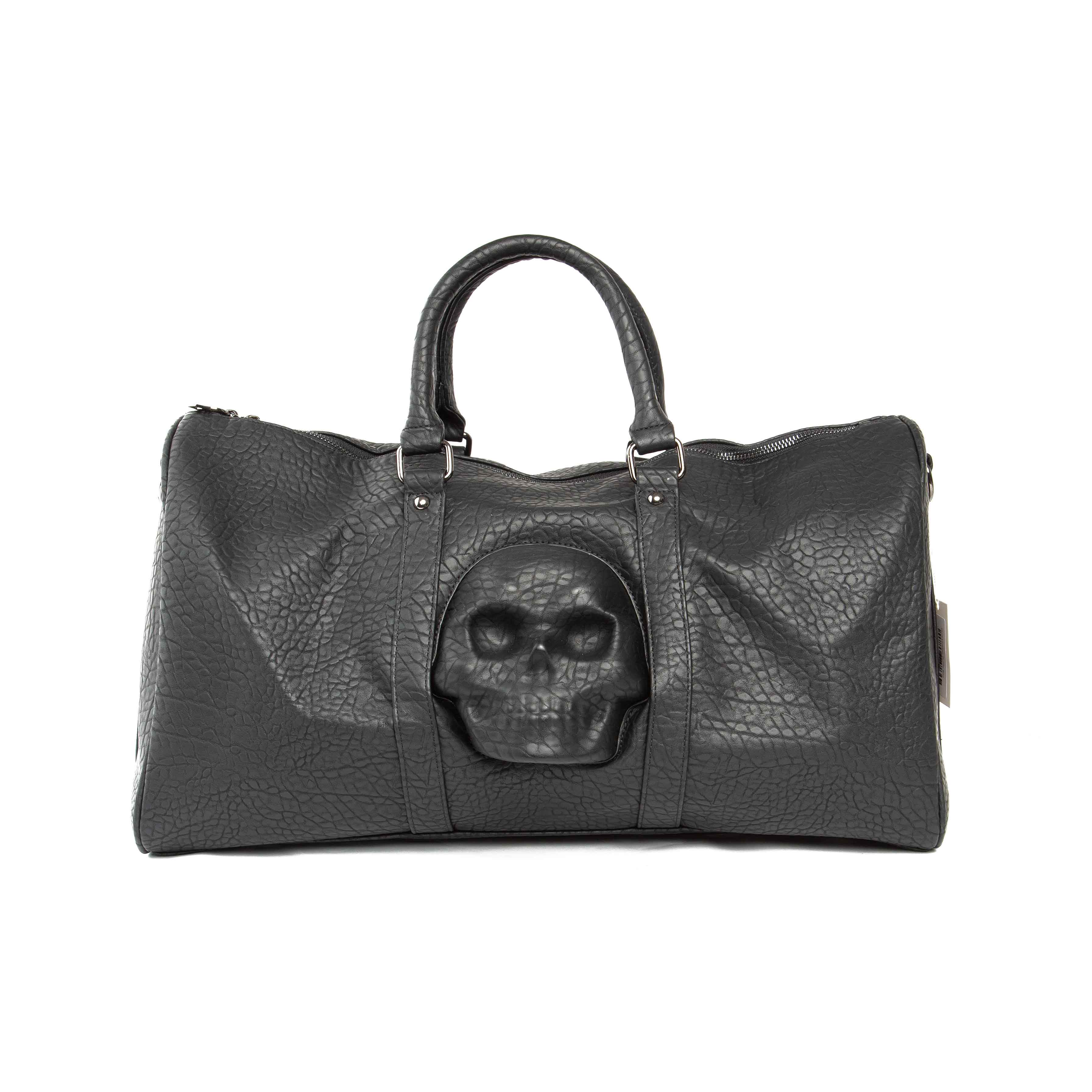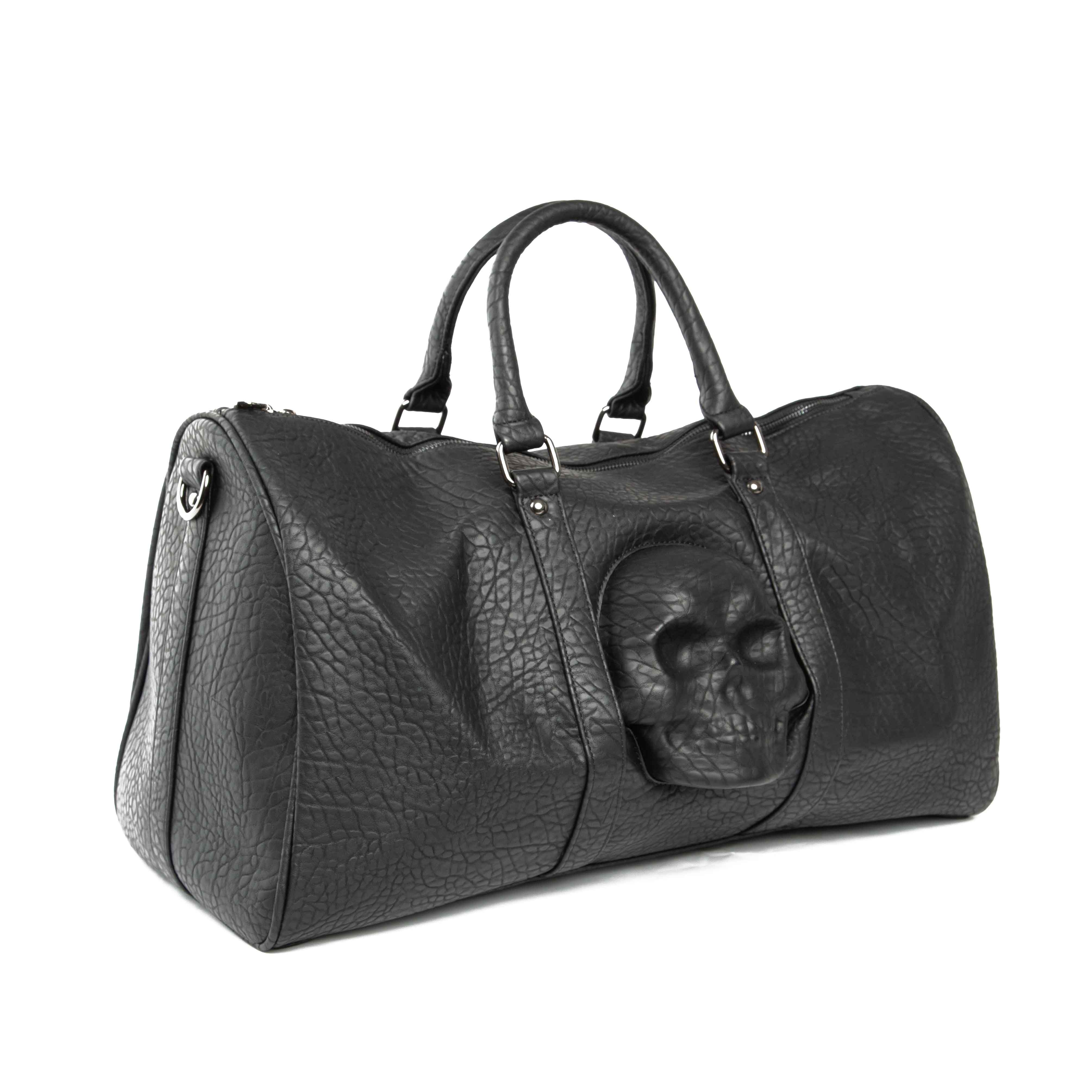 Closure: Features a main top zipper closure for secure access to the spacious interior.Handles: Equipped with sturdy top carry handles. D-rings on the side indicate it's likely designed to accommodate a detachable and adjustable shoulder strap (sold separately or included).Design Elements: The focal point is the large, three-dimensional skull applied to the front panel, creating a bold and tactile effect.Interior: Provides a generous main compartment, typically lined, and may include internal pockets for organization (e.g., zip pocket, slip pockets).Wipe clean with a soft, damp cloth and mild soap.Avoid harsh chemicals, abrasive cleaners, or excessive rubbing, which can damage the faux leather or the skull detailing.Do not machine wash, tumble dry, or iron.Store in a cool, dry place away from direct sunlight when not in use to preserve the material's integrity and shape.