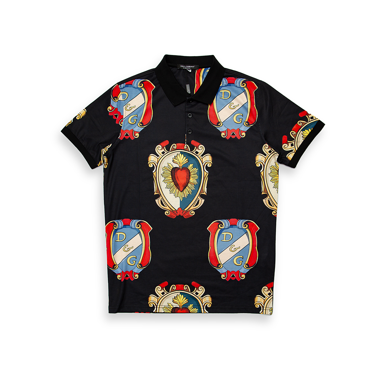 Graphic: All-over repeated print of Sacred Heart and DG family crest motifs.