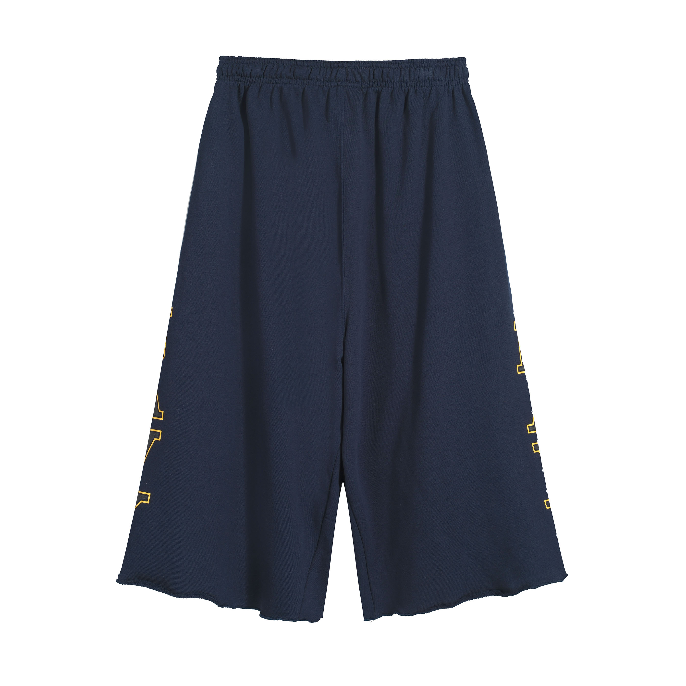 Detail: Large, vertical "NAVY" graphic print on the side legs.