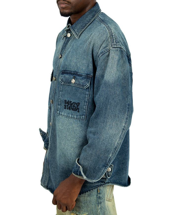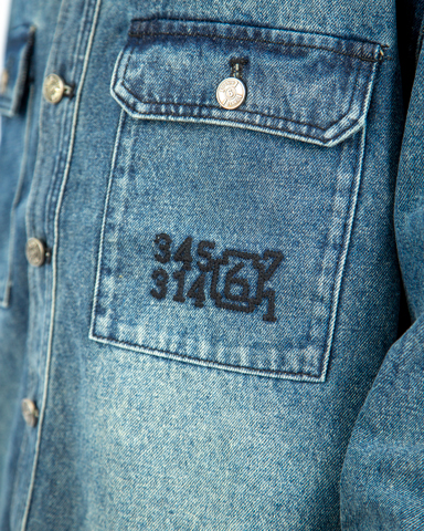 Men's blue denim long-sleeved prom shirt with button-down closure and front pocket.Men's blue denim long-sleeved prom shirt with button-down closure and front pocket.Men's blue denim long-sleeved prom shirt with button-down closure and front pocketMen's blue denim long-sleeved prom shirt with button-down closure and front pocket.