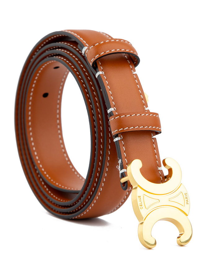 Buckle: Gold-tone metal with a unique crescent design