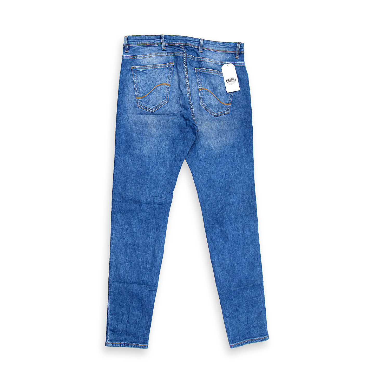 Details & Care DescriptionMaterial Cotton/Spandex or Cotton/Polyester BlendClosure Zip fly and button closurePockets Classic Five-Pocket StylingFit Slim Straight Fit Consistent leg width below the kneeDetailing Medium blue wash, light fading/whiskering, clean finishWashing Machine wash cold, gentle cycle, inside out, with like colors.Drying Tumble dry low or line dry to minimize shrinkage and maintain color.IroningIron inside out on medium heat if needed. Do not bleach.
