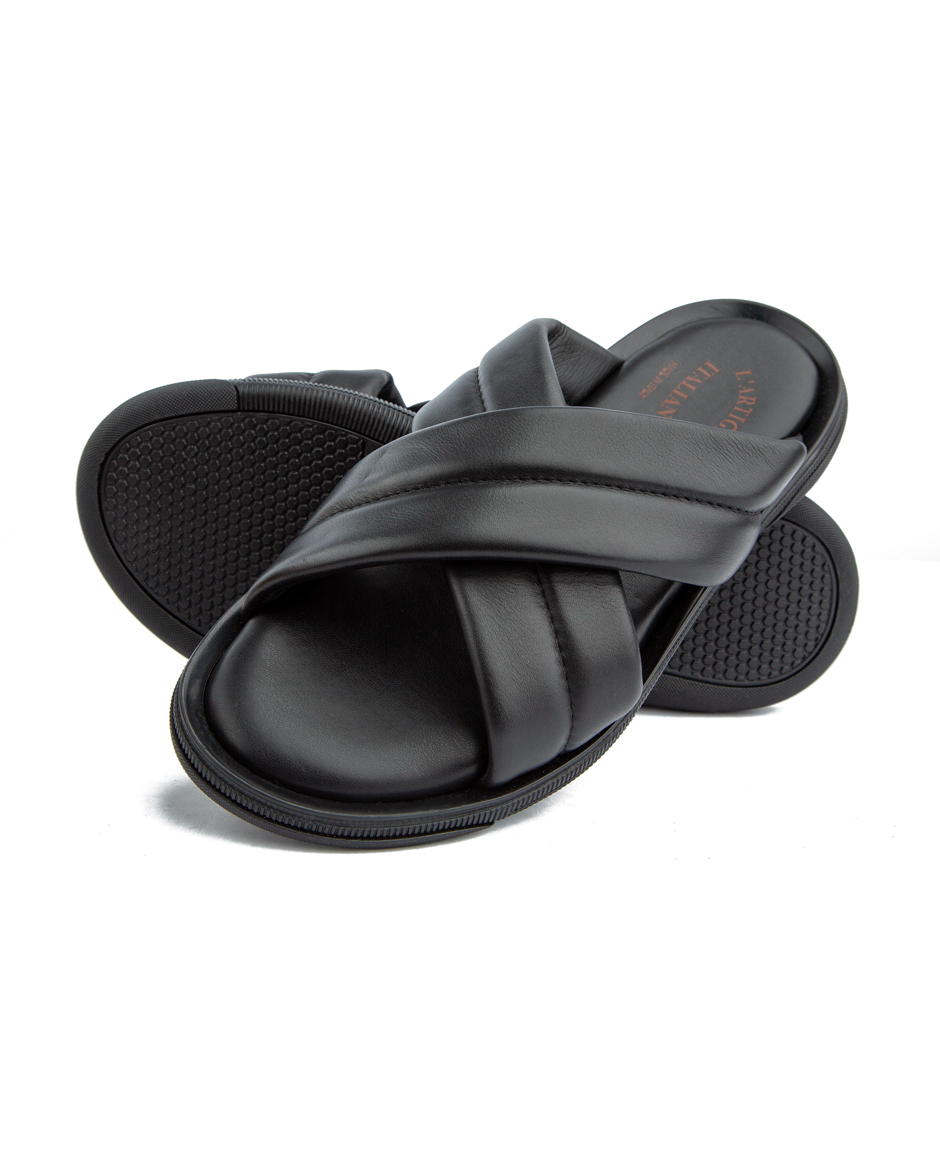 Premium authentic made in Italy leather with cross strap design: Offers a secure and stylish fit. The texture adds visual interest.Soft cushioned footbed for superior comfort: Ensures comfortable wear for extended periods.Lightweight and breathable for all-day wear: Keeps feet cool and comfortable, even in warm weather.Anti-slip rubber outsole for maximum grip and durability: Provides stability and traction on various surfaces.Perfect for casual outings, vacations, and smart-casual wear: Versatile design suitable for a range of occasions.Clean with a damp cloth; avoid prolonged exposure to water: Easy to maintain.Store in a cool, dry place when not in use: Proper storage will prolong the lifespan of the sandals.