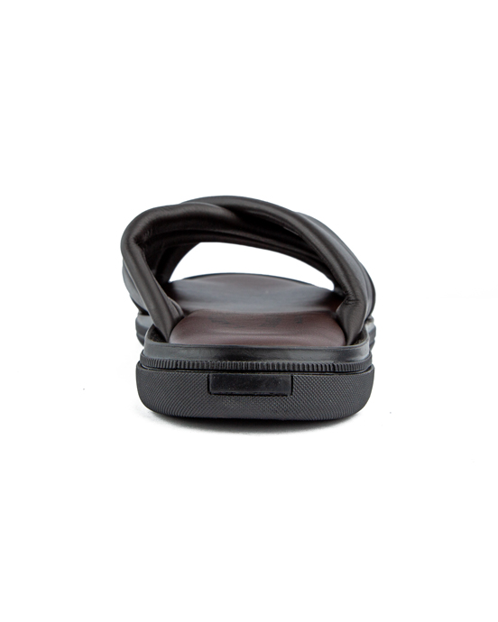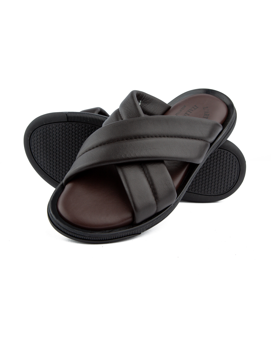 Men's Padded Leather Cross Strap Slide Sandals, 15034-Brown