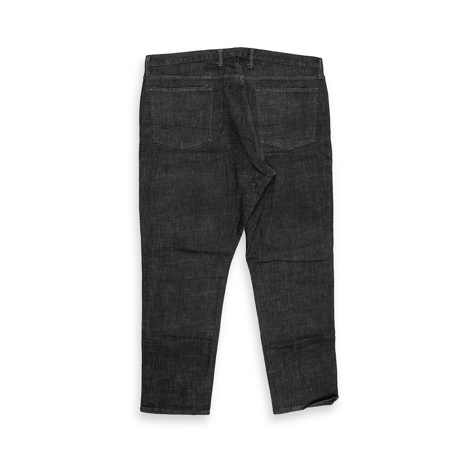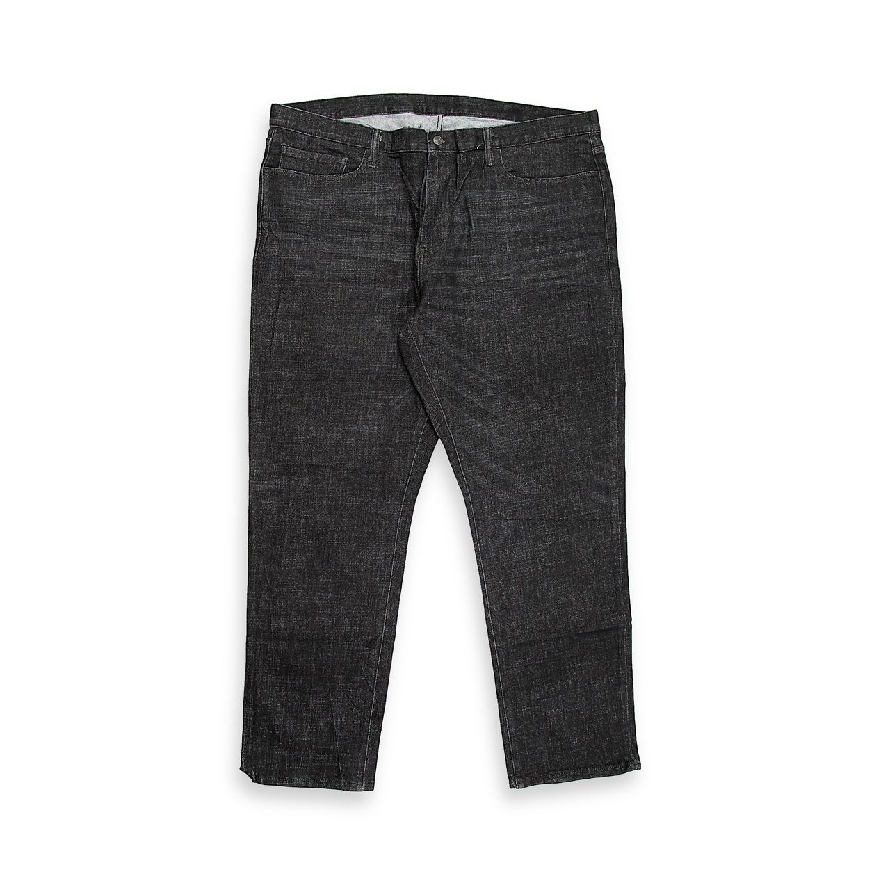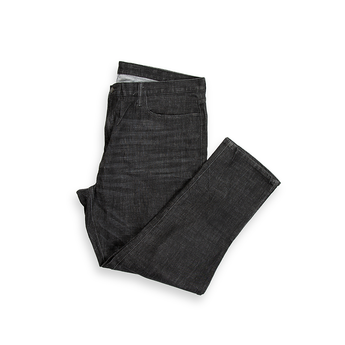 Features: Five-pocket styling, zip fly, button closure, dark charcoal wash with minimal fading, belt loops.