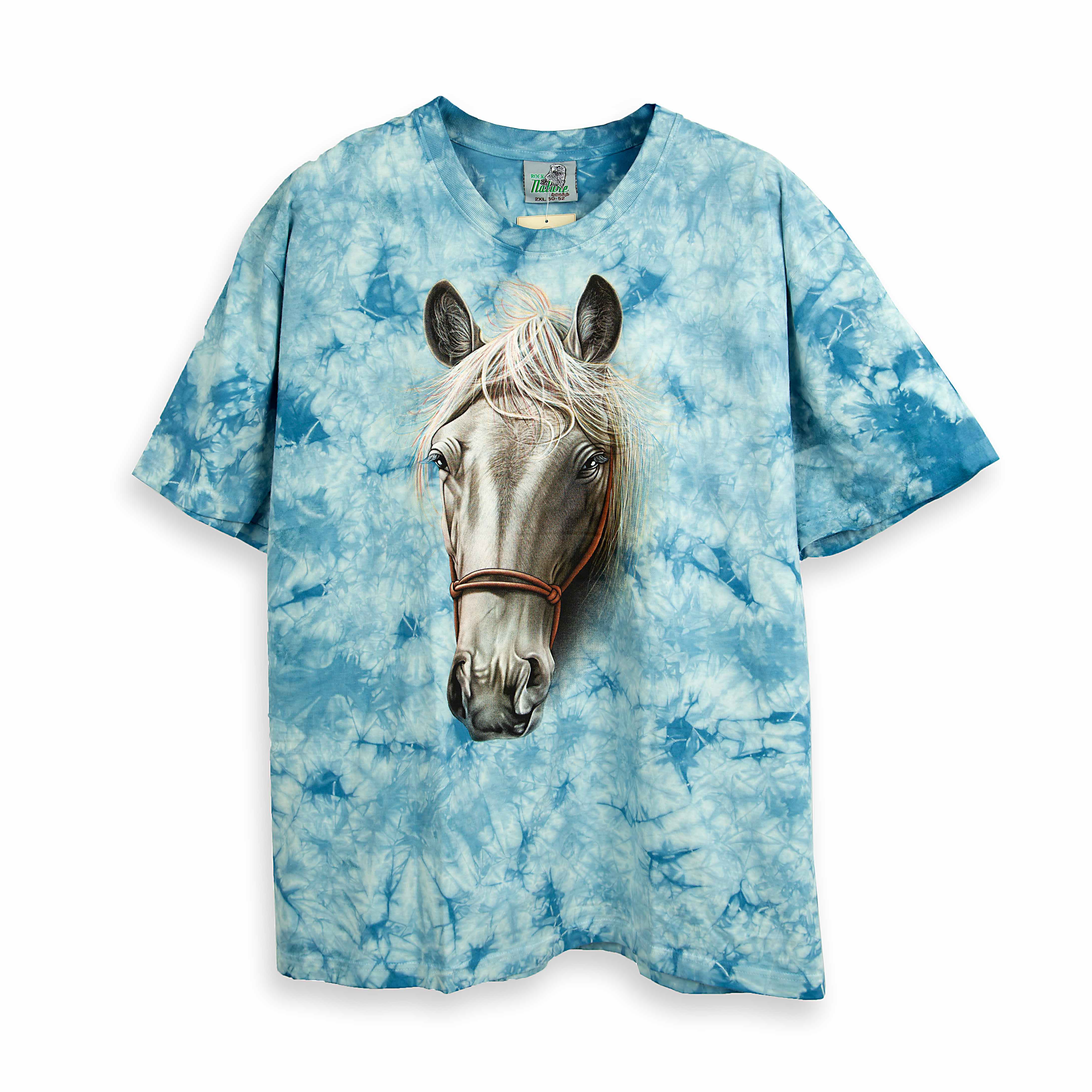 "Rock Eagle sky blue tie-dye unisex T-shirt with realistic horse head graphic""Rock Eagle sky blue tie-dye unisex T-shirt with realistic horse head graphic"Rock Eagle sky blue tie-dye unisex T-shirt with realistic horse head graphic