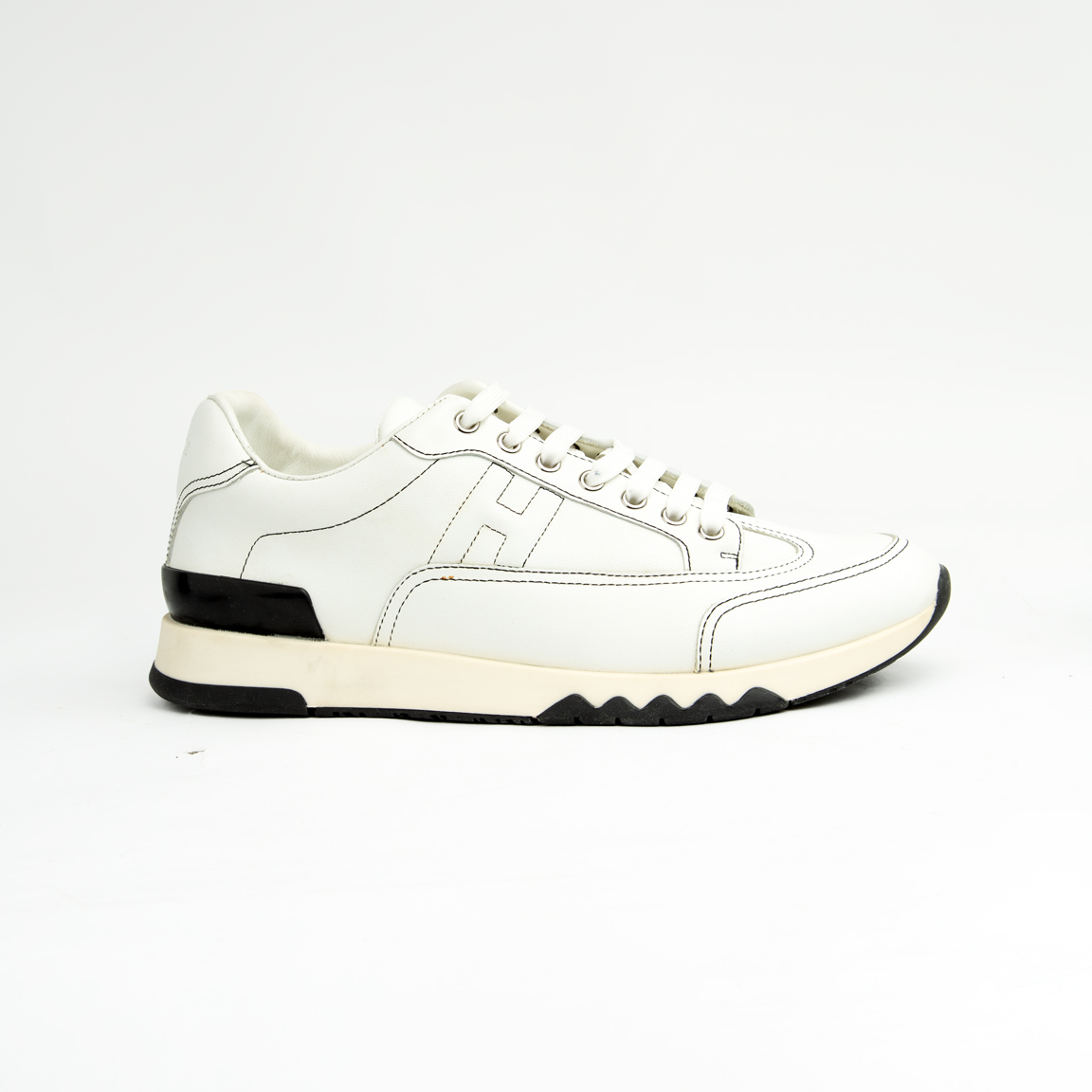 Design Features: Black contrast stitching, stylized 'H' outline on the side panel, and metal eyelets.