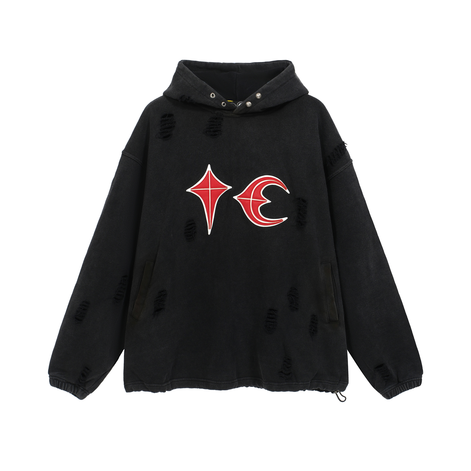 Design: Oversized, boxy fit with drop shoulders and a standard kangaroo pocket.