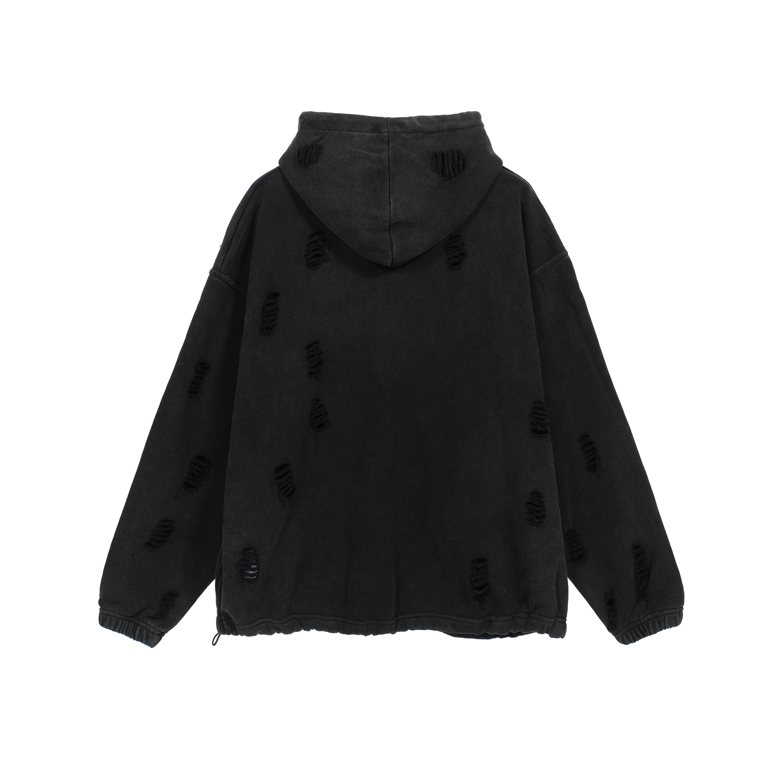Do not tumble dry. Lay flat or hang dry to avoid further distortion of the distressing and prevent shrinking.