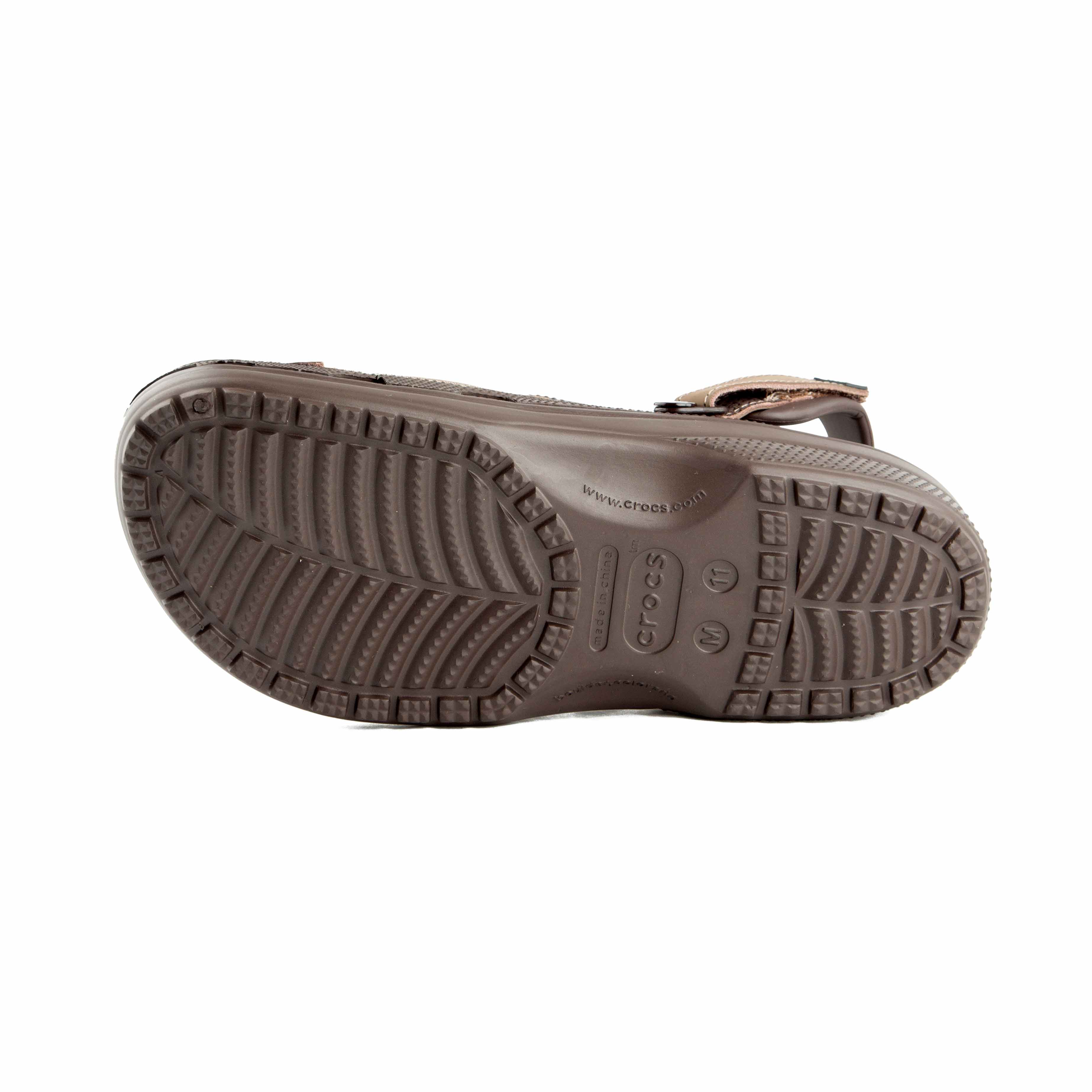 Material: Likely a combination of Crocs' proprietary Croslite™ foam for the base and a synthetic upper material (e.g., textile, faux leather) designed for durability and quick drying.
