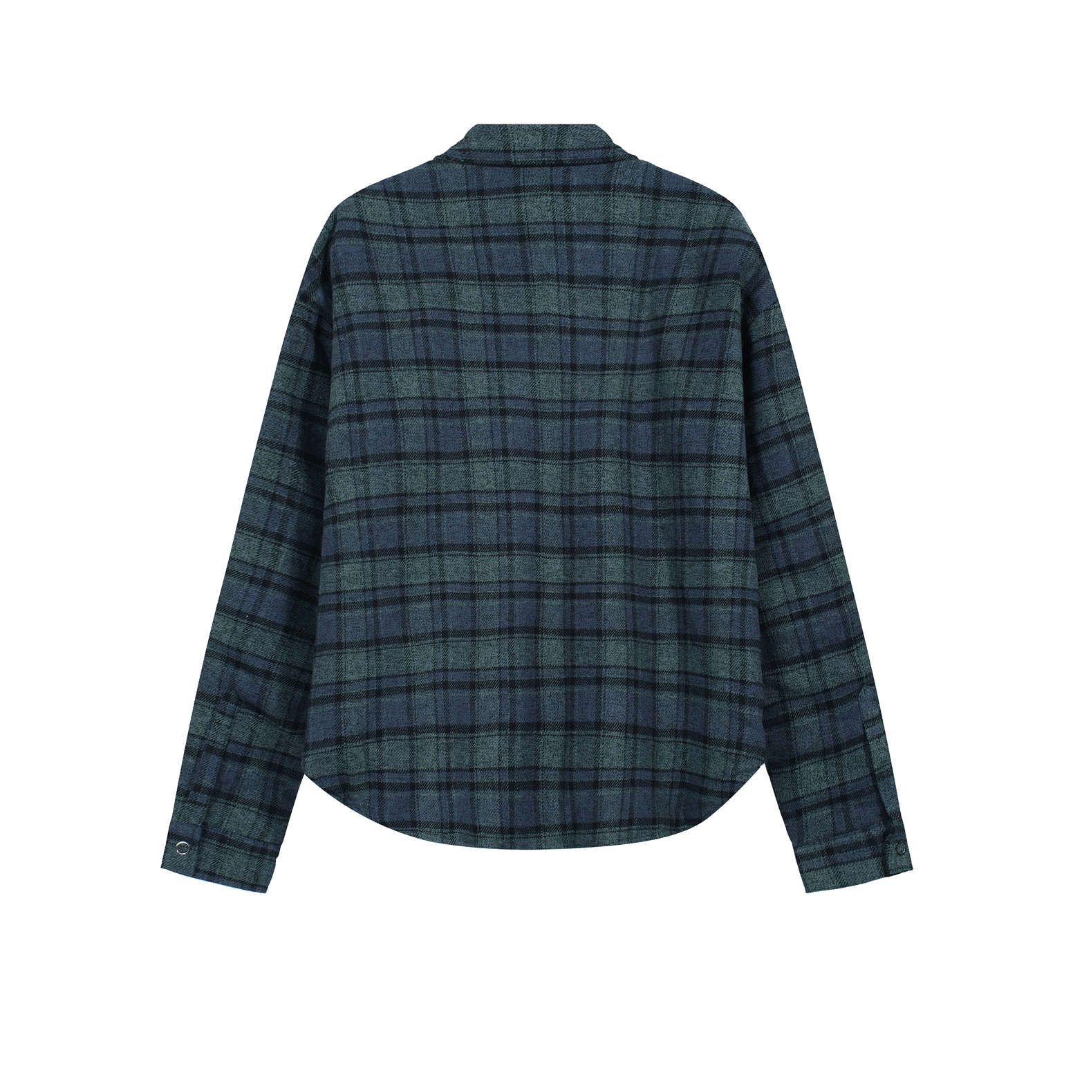 Design: Classic button-down front, pointed collar, full-length sleeves with buttoned cuffs, and a curved hem.